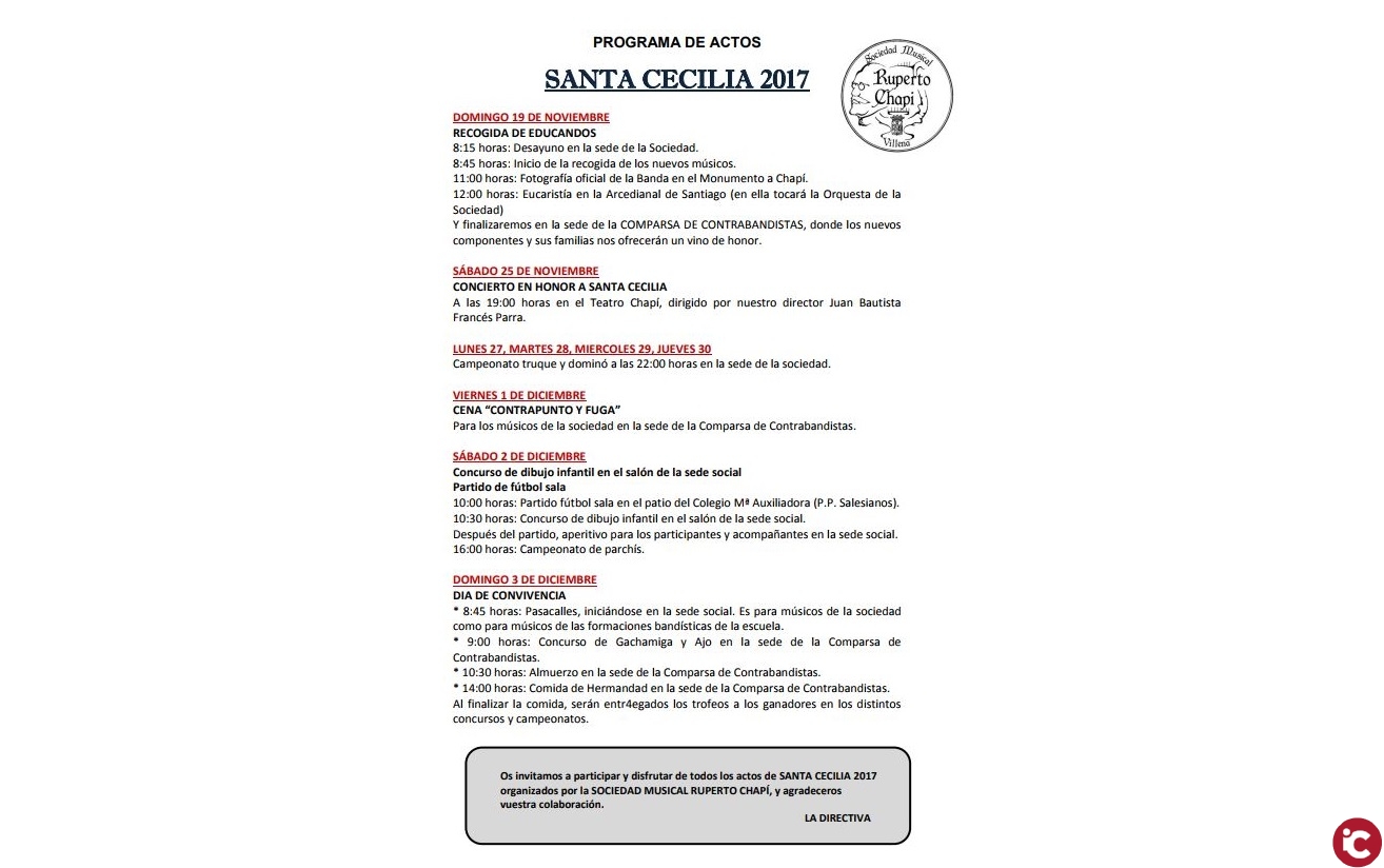 PROGRAMA DEL CONCIERTO DE SANTA CECILIA 2017