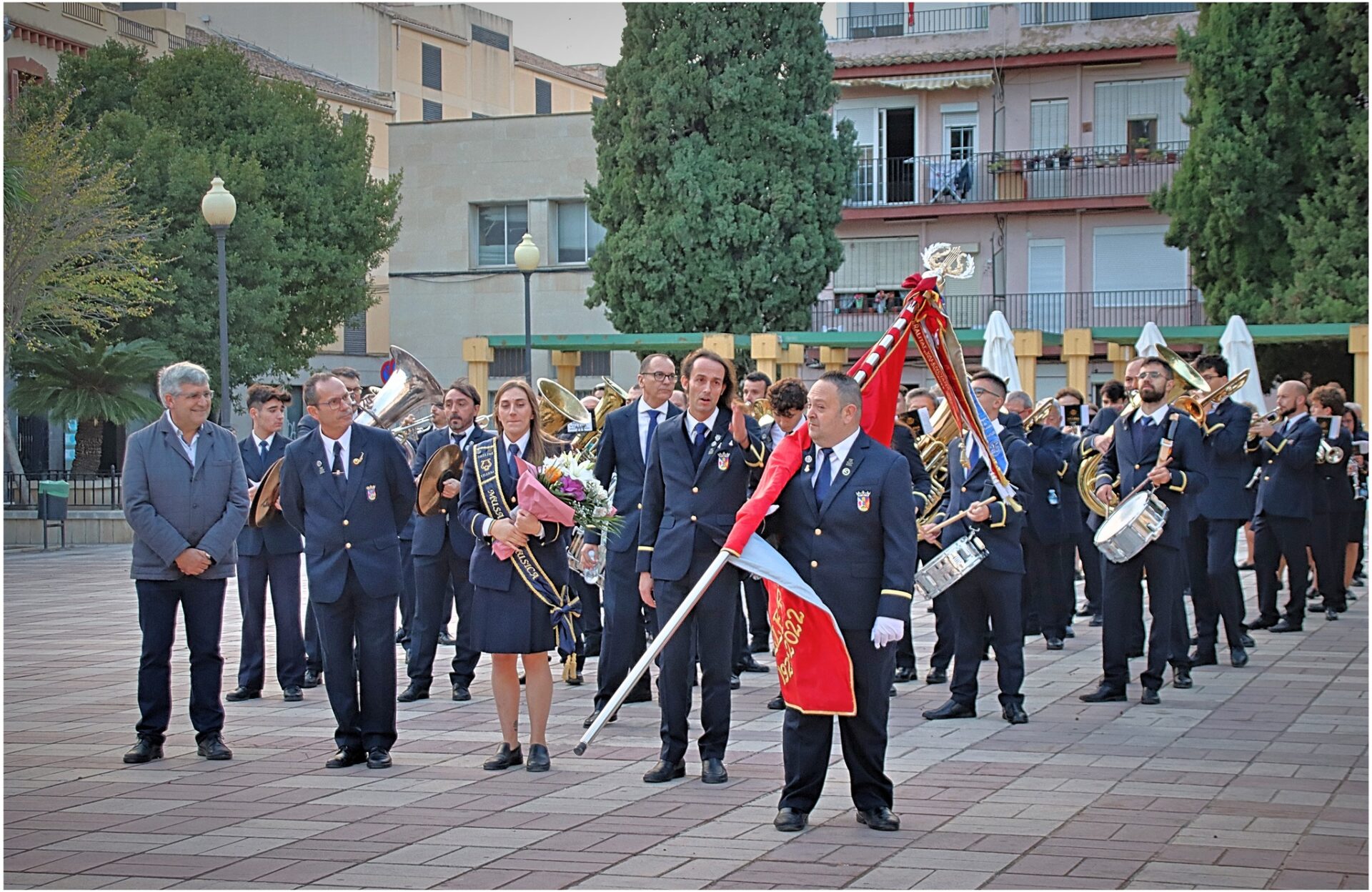 Poco a poco fuimos completando el grupo de educandos que encabezaba la comitiva. La siguiente en incorporarse a la misma fue Zahira Fabiola Juan Lapo con la flauta travesera y de nuevo sonó Orgullo Santiaguista. Finalizó la recogida de educandos con Daniel Navarro Azorín, un nuevo oboe para la Banda Municipal que fue recibido con el pasodoble Tesoro y Fortaleza.