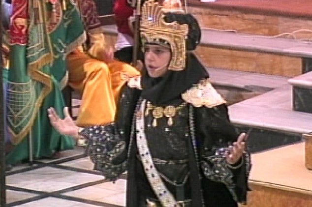 Representación de la Conversión del Moro al Cristiano, por los Embajadores Infantiles, en el altar Mayor de la Iglesia Arciprestal de Santiago.
