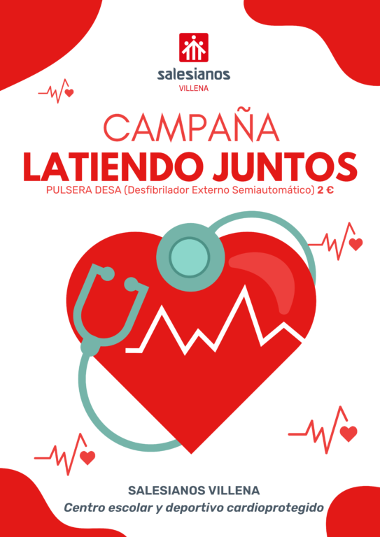 El miércoles 19 de abril de 2023 es un día señalado en rojo en nuestro calendario ya que la casa Salesiana de Villena lanza la Campaña «Latiendo juntos» para adquirir un Desfibrilador Semiautomático (DESA) para dar cobertura sanitaria a todos los ambientes y asociaciones de nuestro centro: