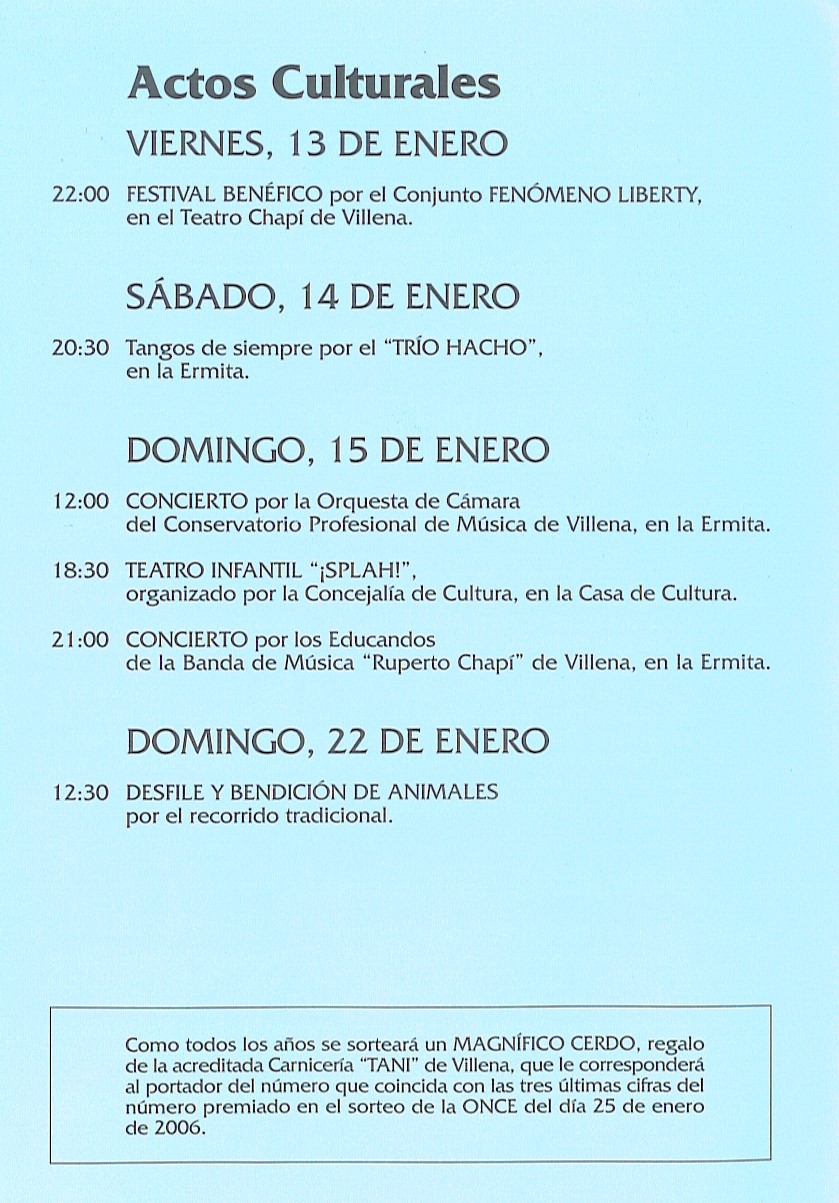 Adjuntamos aquí en formato de imagen, el tríptico del Saludo y los diversos actos culturales de la Asociación de Vecinos del Barrio de San Antón.