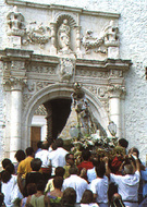 A las 5 de la tarde, en el mismo emplazamiento dará lugar una Santa Misa oficiada por el cura párroco del Santuario y cantada por las voces del coro. Una vez concluida la mencionada Oración se desplazará la Santísima Virgen a Villena. A su entrada se la acompañará con Salvas de arcabucería y descansará ya en la Iglesia Arciprestal de Santiago.