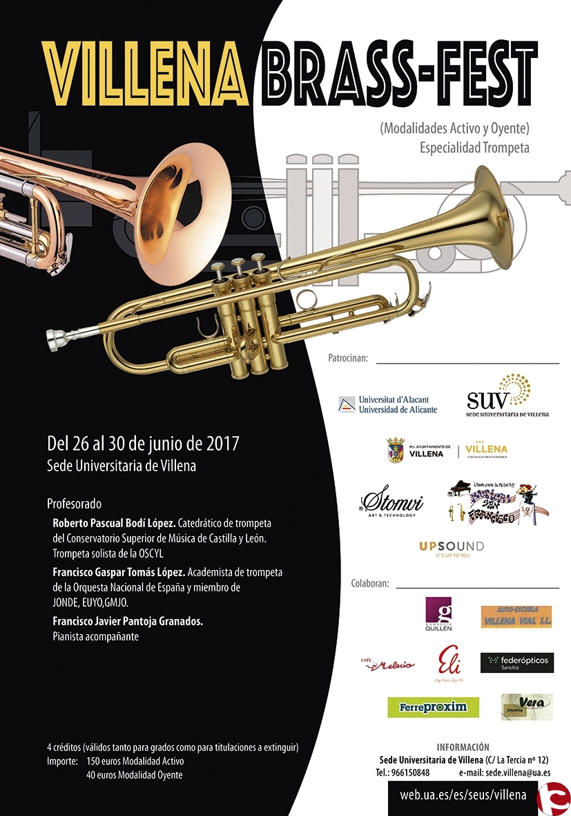 modalidades activo y oyente, en especialidad trompeta. Más información y matrícula en la Sede Universitaria (La Tercia nº 12) o www.web.ua.es/es/seus/villena.