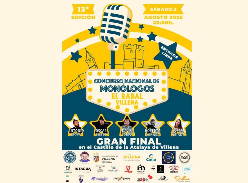 Villena se prepara para volver a vivir una de sus noches más esperadas: la gran final del XIII Concurso Nacional de Monólogos El Rabal-Villena.