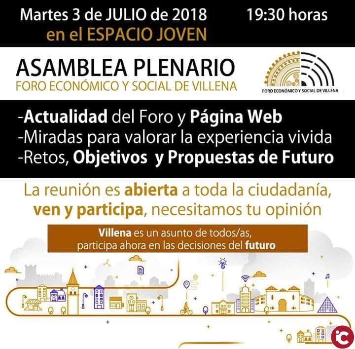 Hoy jueves 19 de julio a las 22:00 horas puedes ver la entrevista en Intercomarcal Televisión en referencia a la última asamblea de valoración del trabajo realizado y enfoque del futuro del Foro Económico y Social de Villena. ¡No te la pierdas!.
