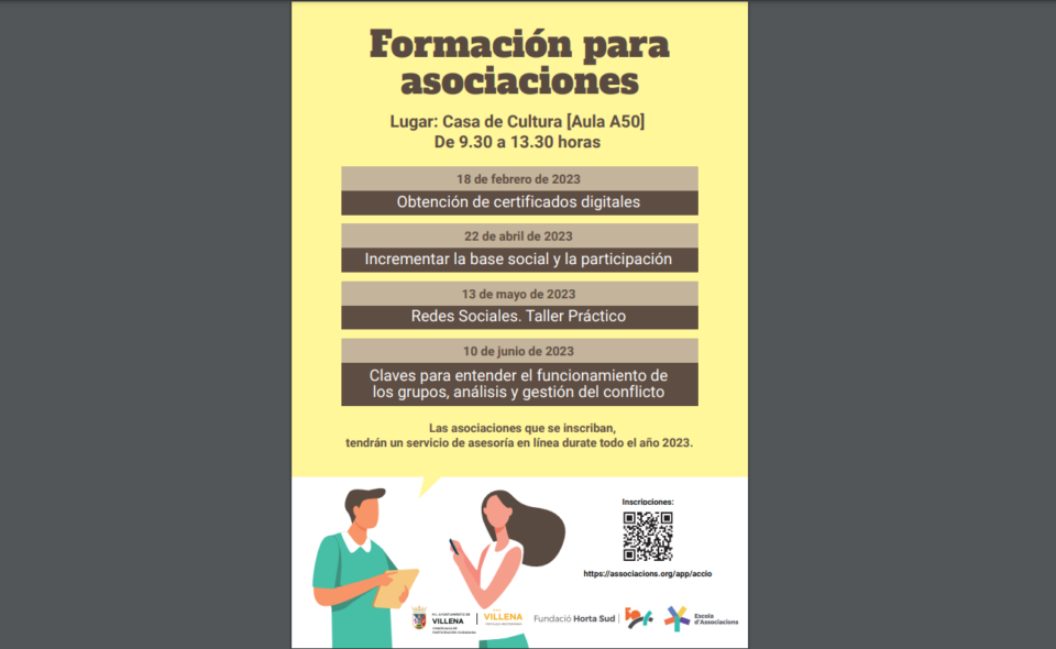 La cita, como viene siendo en ediciones anteriores, tendrá lugar en la Casa de la Cultura de Villena de 9.30 a 13.30 horas, previa inscripción en Inscripció a Accions de la Fundació Horta Sud (associacions.org). Esta sesión del taller tiene un cupo máximo de 20 plazas, abiertas a miembros de diferentes entidades, asociaciones y colectivos de la ciudad.