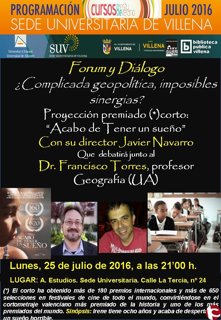Nos informan sobre las dos últimas actividades culturales, en el contexto de la Sede Universitaria de Villena y los cursos de Verano Rafael Altamira de esta sede, que llevaremos a cabo la próxima semana (lunes y martes). Las dos actividades son de «entrada libre».