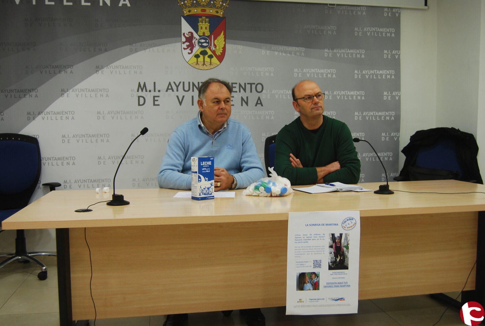 Esta campaña de recogida de tapones solidaria está organizada por el Ayuntamiento de Villena, la Junta de la Virgen y la Fundación SEUR, quien recoge y transporta gratuitamente los tapones. Es una inmensa alegría para nosotros que una localidad como Villena haya recogido cuatro toneladas de las cuarenta que necesita Martina para costear su tratamiento ha señalado Manolo Muñoz, Presidente de la Junta de la Virgen.