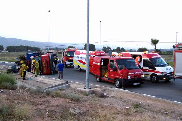 Pasadas las ocho de la tarde, se producía un accidente de tráfico en la rotonda del puente que conduce a la zona de El Grec (Carretera de Caudete). Un camión transportaba chatarra, perdió el control al hacer la rotonda según los primeros indicios.