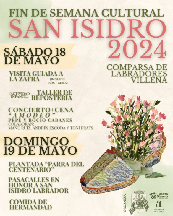 El domingo 19 de mayo la jornada masera se iniciará con una recepción con café y pastas a las 11:30h en el Huerto de la Pona. Posteriormente tendrá lugar la presentación de varias actividades del Centenario, dando paso a las 12:30h al tradicional Pasacalles con San Isidro. La imagen será de nuevo cedida por la Cooperativa, a quien agradecemos su colaboración. Como veis, unas cuantas organizaciones de Villena tenemos a este santo por patrón, lo que ensalza la importancia histórica de la agricultura en nuestra ciudad. Este año el recorrido será por El Rabal y tendremos parada con avituallamiento en La Tercia. A la vuelta se iniciará el cocinado de las paellas y gazpachos en la sede. La Comida de Hermandad será a partir de las 15:00h en nuestro patio. Al estilo Gazpachá, de “mojaíca y p’atrás”. La comida es gratuita y destinada a socios y socias. Se estarán repartiendo el miércoles y viernes en Secretaría tickets, cada uno válido para socio/a + acompañante. Sugerimos adelantarse a la recogida de estas invitaciones para evitar hacer colas el mismo domingo. Si no puedes recogerlo tú mismo, envía a alguien de tu peña para que lo haga por ti. Durante todo el día, comida incluida, nos acompañará la música de la Sociedad Musical Ruperto Chapí.