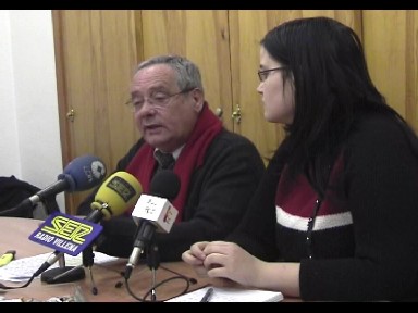 Rueda de prensa recogida por las cámaras de TV Intercomarcal en la que miembros del Ayuntamiento de Villena llevan a cabo una valoración de la Feria del Campo y de Artesanía Festera celebradas en Villena durante el año 2004.