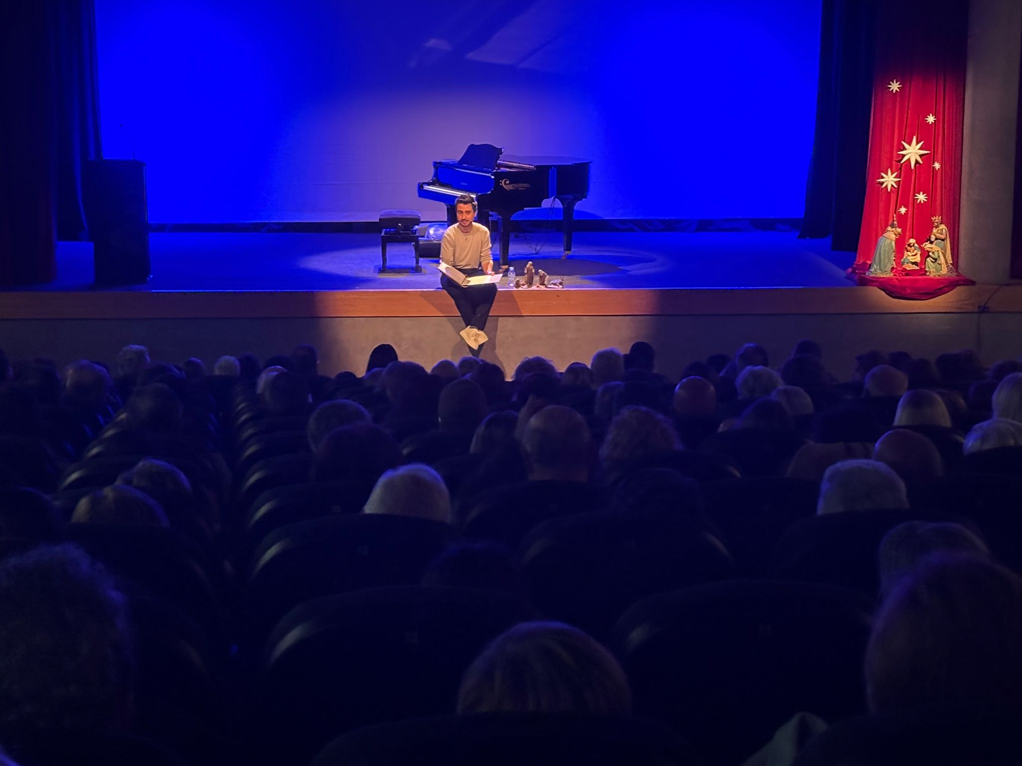Ante un auditorio repleto, Lucas ofreció un pregón cercano y sincero, alejado de los discursos formales, en el que combinó palabra y música para transmitir su particular forma de entender la Navidad: como un tiempo para abrir las puertas, compartir y reencontrarse. Su intervención fue recibida con atención y emoción por un público que conectó desde el primer momento con su mensaje.