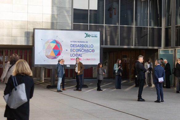 El Ayuntamiento de Villena ha participado de manera activa en la VI Edición del Foro Mundial de Desarrollo Económico y Local, celebrado en Sevilla, que ha congregado a más de 3.000 participantes de 100 países diferentes. La delegación villenense estuvo encabezada por la edil de Desarrollo Económico, Paula García, y el director del Gabinete de Promoción y Desarrollo, Manuel Amorós, quienes pudieron compartir iniciativas locales y recibir información de proyectos de éxito desarrollado en municipios de Europa, África o Latinoamérica.