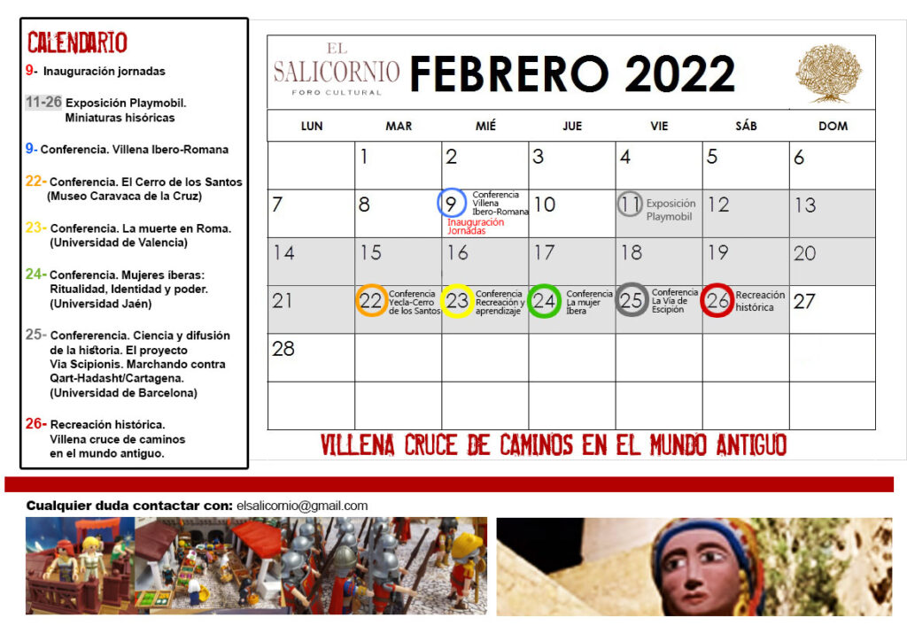 En febrero del 2022, el Foro Cultural el Salicornio junto al Ayuntamiento de Villena y la Sede Universitaria de Villena de la Universidad Alicante y la Asociación de Jubilados y Pensionistas, se ha planteado un nuevo desafío para celebrar el 497 aniversario del Título de Ciudad,  y es traer a Villena una de las épocas que menos se ha tratado en nuestra ciudad pero que sin lugar a dudas tiene una importancia trascendental para poder entender la idiosincrasia que tiene nuestra ciudad como cruce de caminos.