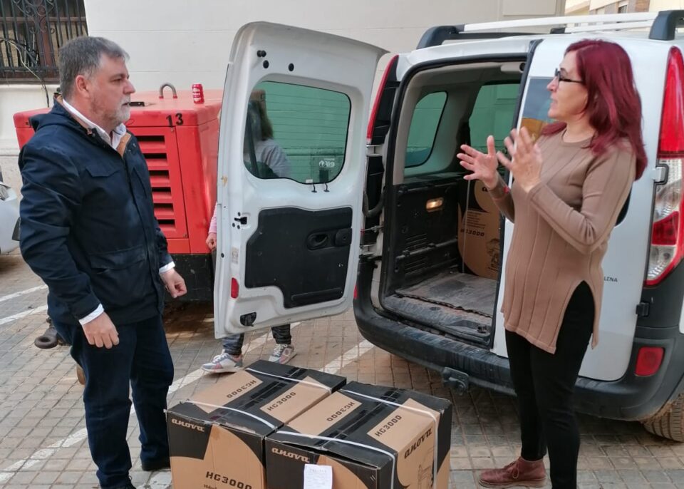 Cerdán entregó en Paiporta y Benetússer 10 hidro-limpiadoras, donadas por una empresa al Ayuntamiento de Villena, que se suman a las autobombas enviadas hace unos días a estos municipios, material que viene reclamando los afectados.