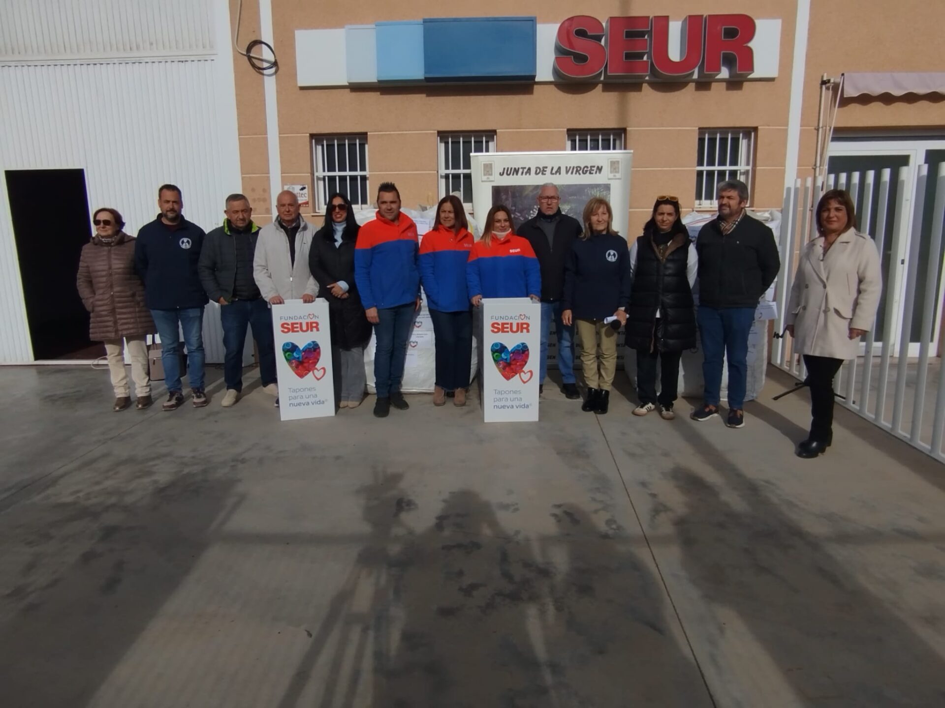 La Junta de la Virgen, junto con la Fundación SEUR, ha llevado a cabo esta mañana la entrega oficial de los tapones recogidos dentro de la Campaña 2025 “Tapones para una nueva vida”, con el objetivo de ayudar a Ángela Baquerizo, una niña de 8 años de Villa del Prado (Madrid) que necesita una nueva silla de ruedas adaptada.