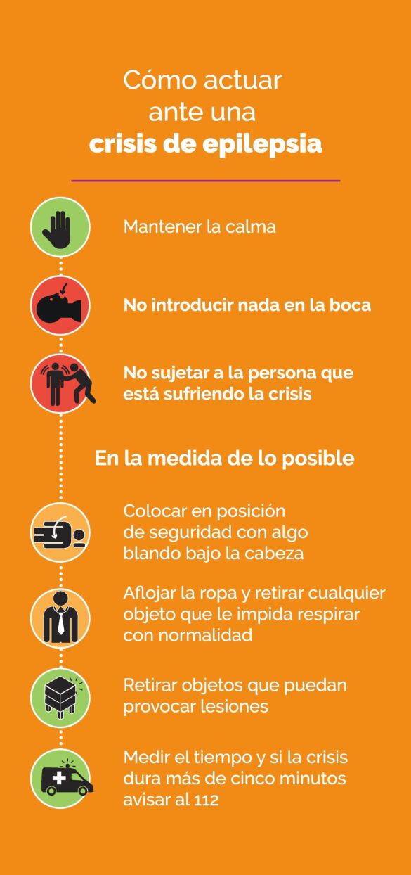 La Asociación Nacional de Personas con Epilepsia difunde una serie de pautas básicas para atender con seguridad a una persona con una crisis epiléptica.  Los siete puntos esenciales son mantener la calma, no introducir nada en la boca del afectado y no sujetar a la persona que está sufriendo la crisis. En la medida de lo posible, se recomienda colocar a la persona en una posición segura con algo blando bajo la cabeza, aflojar la ropa y asegurar que pueda respirar con normalidad, retirar de su alcance objetos que le puedan generar lesiones y avisar al 112 en caso de que la situación se extienda más allá de los cinco minutos.