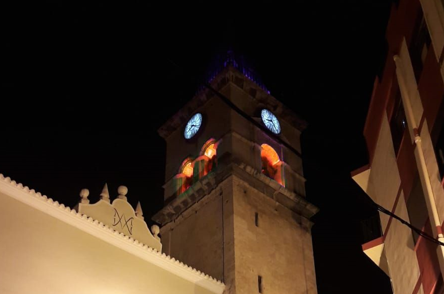 Villena ilumina de naranja el campanario de la Iglesia de Santa María en conmemoración del día Nacional de la Epilepsia