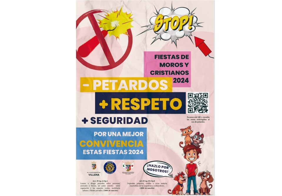 La campaña tiene como lema “-Petardos + respeto y + seguridad” ha sido presentada por el concejal de Seguridad, Sergio Palao y Andrés Martínez, oficial de la Policía Local de Villena .