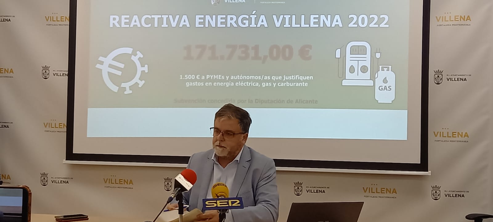 Villena, 5 de octubre de 2022.- El alcalde de Villena, Fulgencio Cerdán, ha explicado hoy las bases del Plan Reactiva Energía, dotado con 171.000 euros aportada por la Diputación Provincial de Alicante, destinados a sufragar el sobrecoste de energía eléctrica, gas y combustible de las pymes y de los trabajadores autónomos. Las bases fueron aprobadas el pasado lunes en la Junta de Gobierno Local y serán de aplicación en breves días tras su publicación en el Boletín Oficial de la Provincia de Alicante (BOPA).
