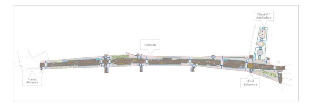 Por su parte, el ingeniero autor del proyecto, Antonio Marco, resumió el objetivo de la obra como “un proceso de transformación de espacios urbanos que dinamice la actividad comercial y consolide este eje como arteria principal con nuevos usos de esta vía, gracias a la mejora del entorno urbano”.