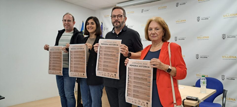 El Ayuntamiento de Villena ha presentado la programación de actividades de las Jornadas de Memoria Histórica de 2024, un abanico de actividades de difusión y sensibilización de nuestra historia reciente que tendrán lugar durante los meses de octubre y noviembre, que ha sido impulsado por la Concejalía de Memoria Democrática, a través de la Comisión de trabajo para el Estudio y la Recuperación de la Memoria Histórica de Villena.