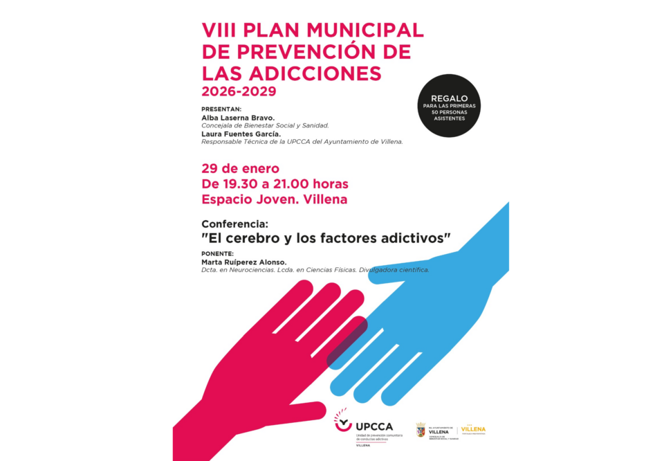 Tras la presentación del plan, el Espacio Joven acogerá la conferencia ‘El cerebro y los factores adictivos’, a cargo de Marta Ruíperez, doctora en Neurociencias y divulgadora científica. Una charla útil, con una visión científica y comprometida, que ofrecerá las claves para hacer frente a las conductas adictivas.