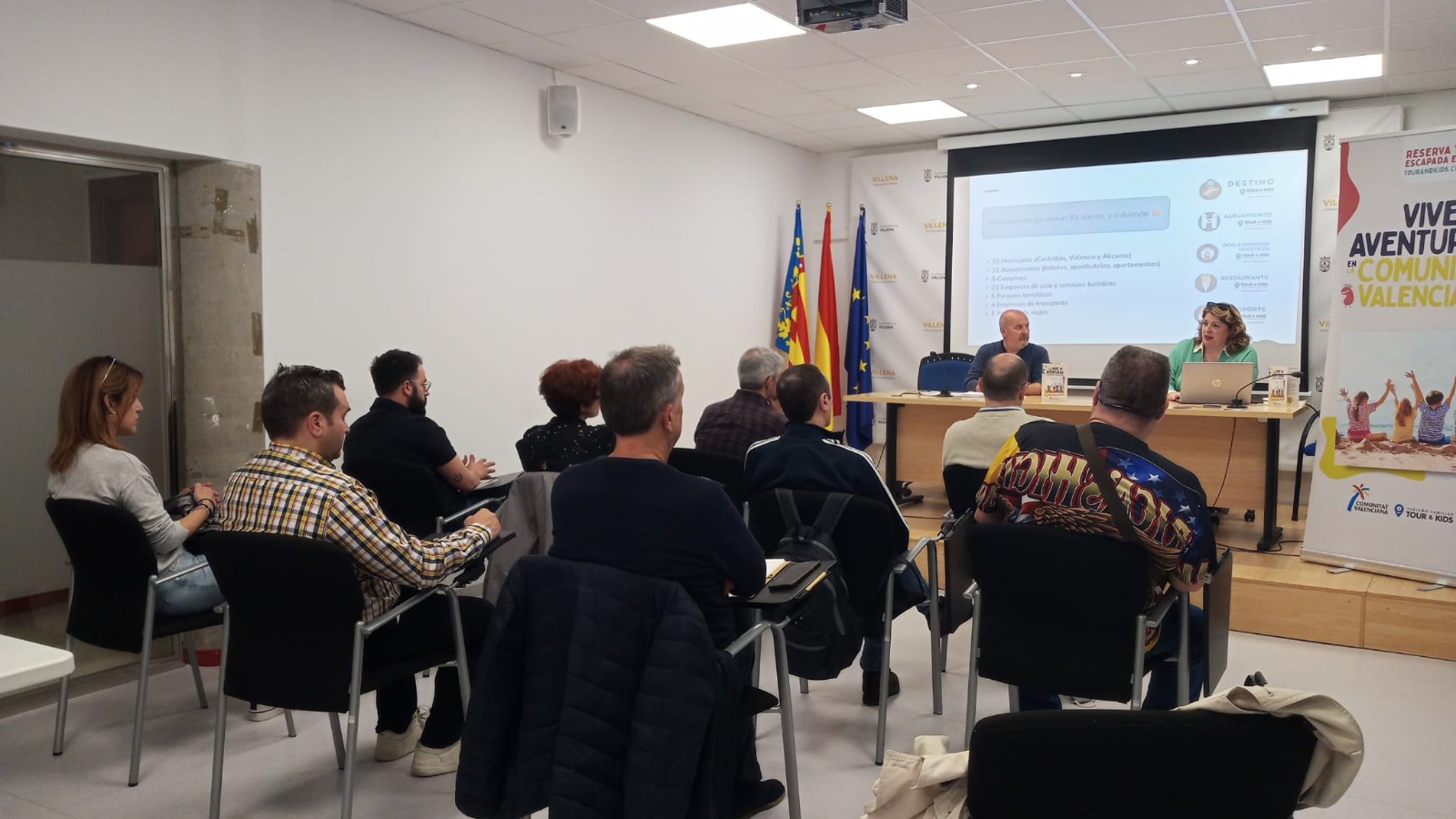 La jornada comenzó con la presentación de María Salinas, gerente de Tour & Kids, en la que mostró a entidades locales del sector turístico, entre los que estuvieron representados restaurantes, alojamientos, bodegas y empresas de eventos y Teatro Chapí, las actividades que realiza esta asociación para la promoción del turismo familiar en la Comunidad Valenciana con el fin de que conocieran este club de producto y propiciar así la creación de experiencias turísticas dirigidas a este segmento de mercado en Villena.
