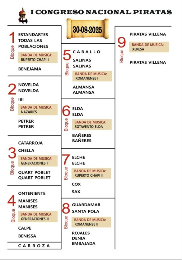 El I Congreso Nacional Pirata es mucho más que un encuentro de comparsas: es una fiesta abierta a la ciudad, que une historia, cultura popular, música y convivencia. Villena vivirá un día cargado de emociones, donde la pasión festera se fundirá con la alegría colectiva.