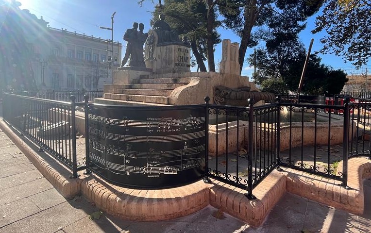 Villena rememora el 125 aniversario de ‘La Revoltosa’ con su partitura grabada en el nuevo vallado del monumento a Ruperto Chapí