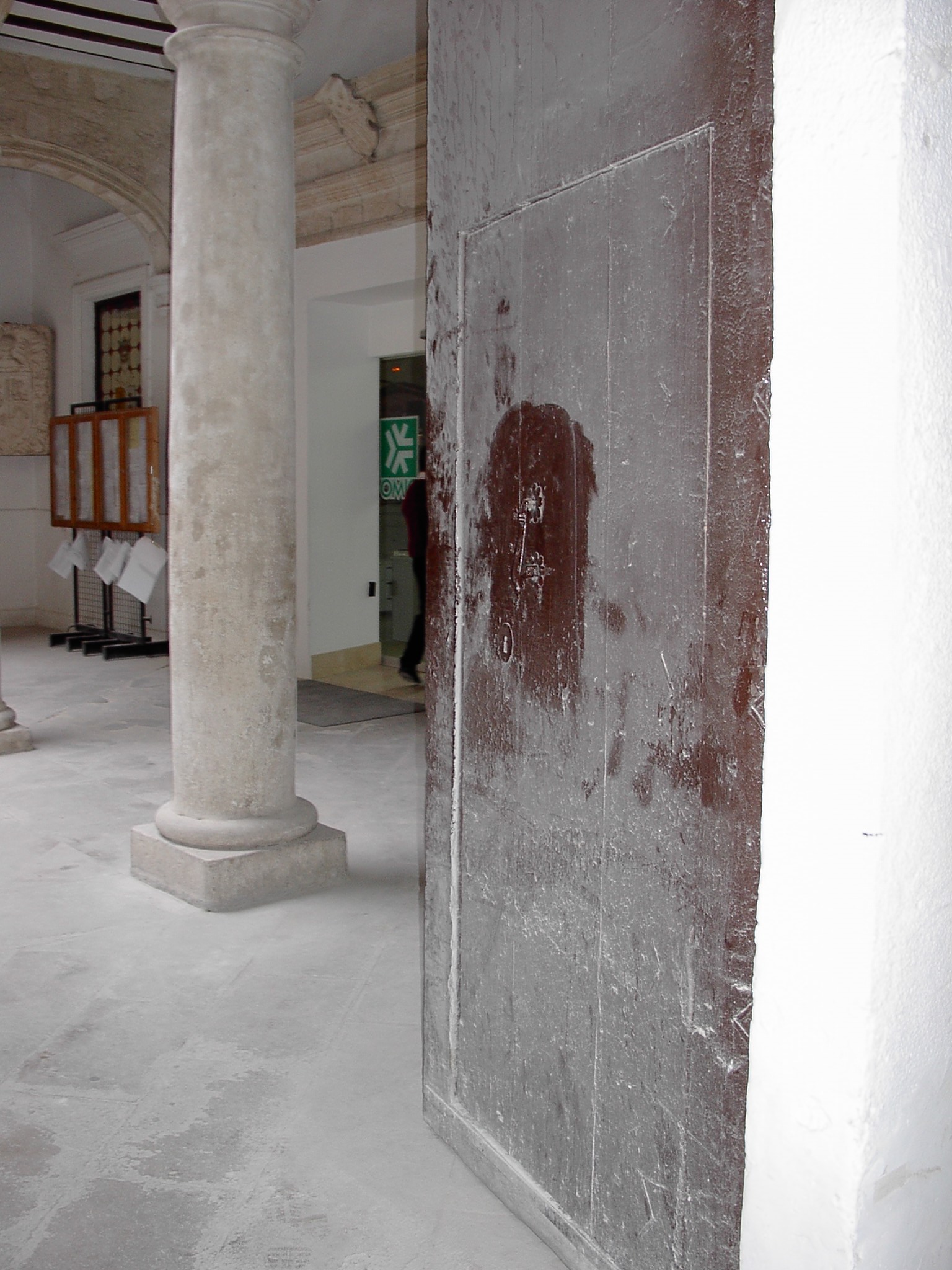 Foto 1: Imagen de la puerta principal del Consistorio, donde faltan las aldabas del siglo XVI.