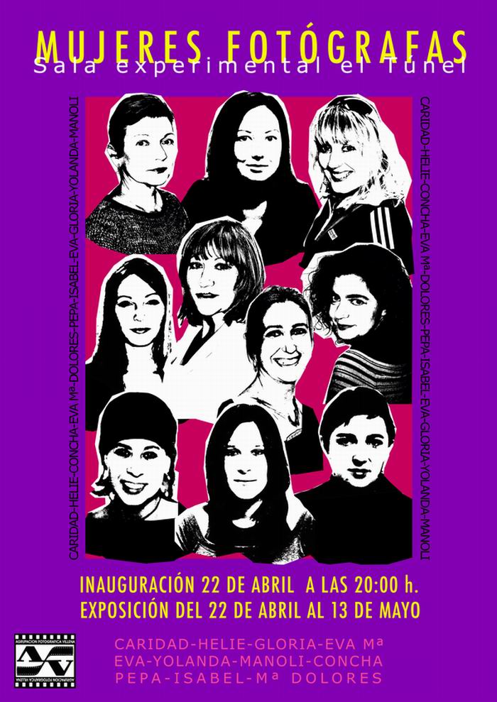 Enmarcada en la PRIMAVERA FOTOGRÁFICA 2005, mañana 22 de abril a las 20 h tendrá lugar la inauguración de la exposición MUJERES FOTÓGRAFAS en la SALA experimental El Túnel. La muestra podrá visitarse hasta el 13 de mayo.