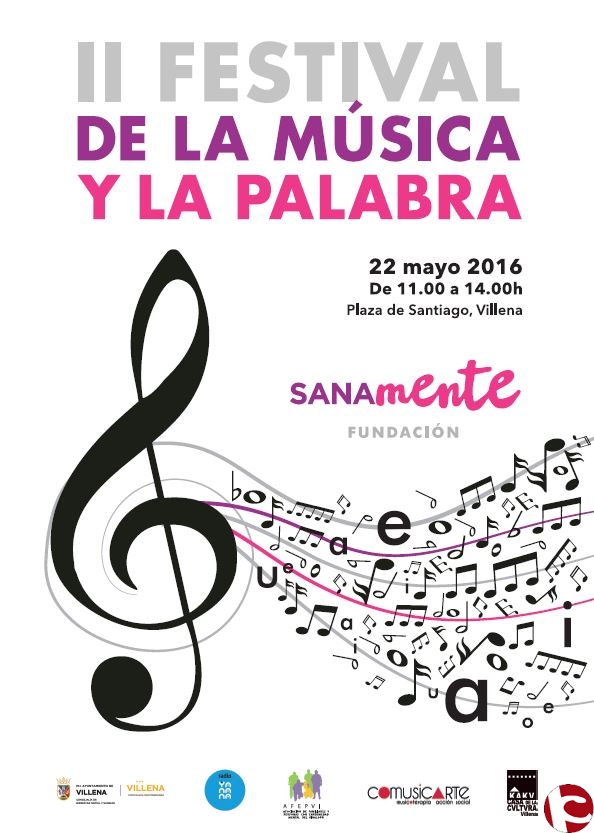 El próximo domingo 22 de mayo, la Plaza Santiago de Villena se llenará de música y palabras en el II Festival de la música y la palabra organizado por la Fundación Sanamente, AFEPVI, Radio Yananá y Comusicarte.
