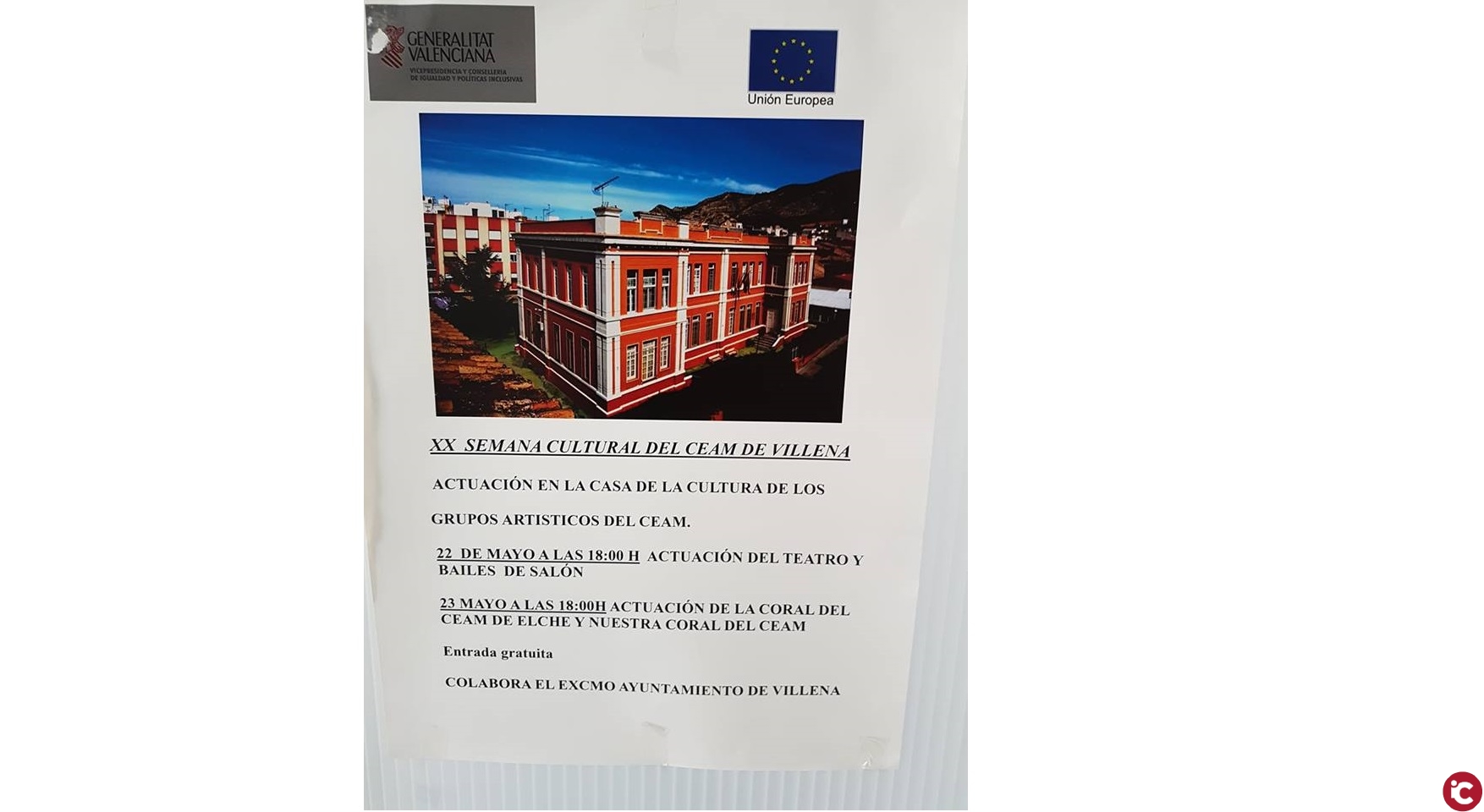 MIERCOLES 23 DE MAYO A LAS 18H, Actuaciones de las Corales del Ceam de Elche y Villena.