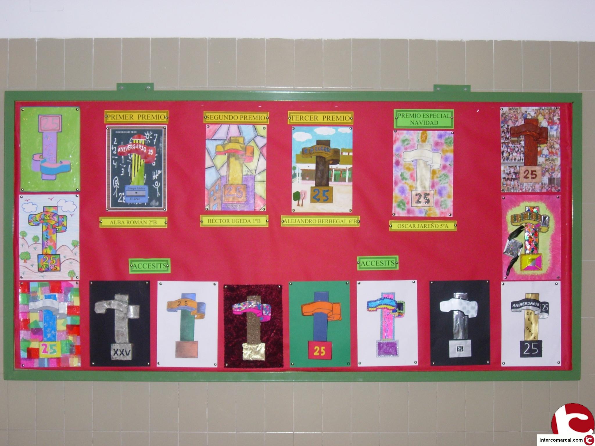 Durante el mes de noviembre se ha llevado a cabo un concurso de dibujo para elegir el logotipo de este aniversario. Los trabajos se han realizado conjuntamente con las familias y se trataba de decorar un dibujo de la escultura que se encuentra a la entrada del colegio. Con todos los trabajos realizados se ha adornado el vestíbulo del centro.