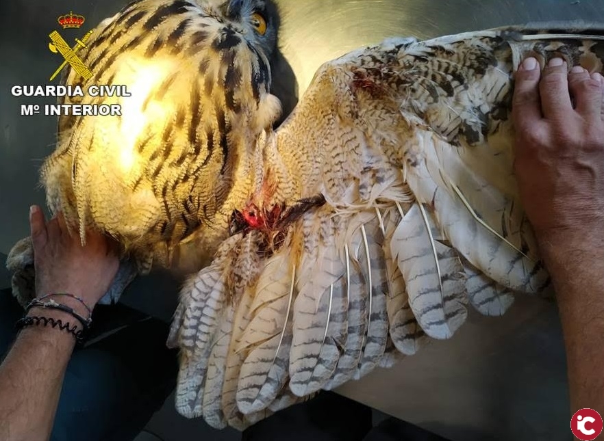 La Guardia Civil salva a un búho real de morir atrapado en un alambre de espino