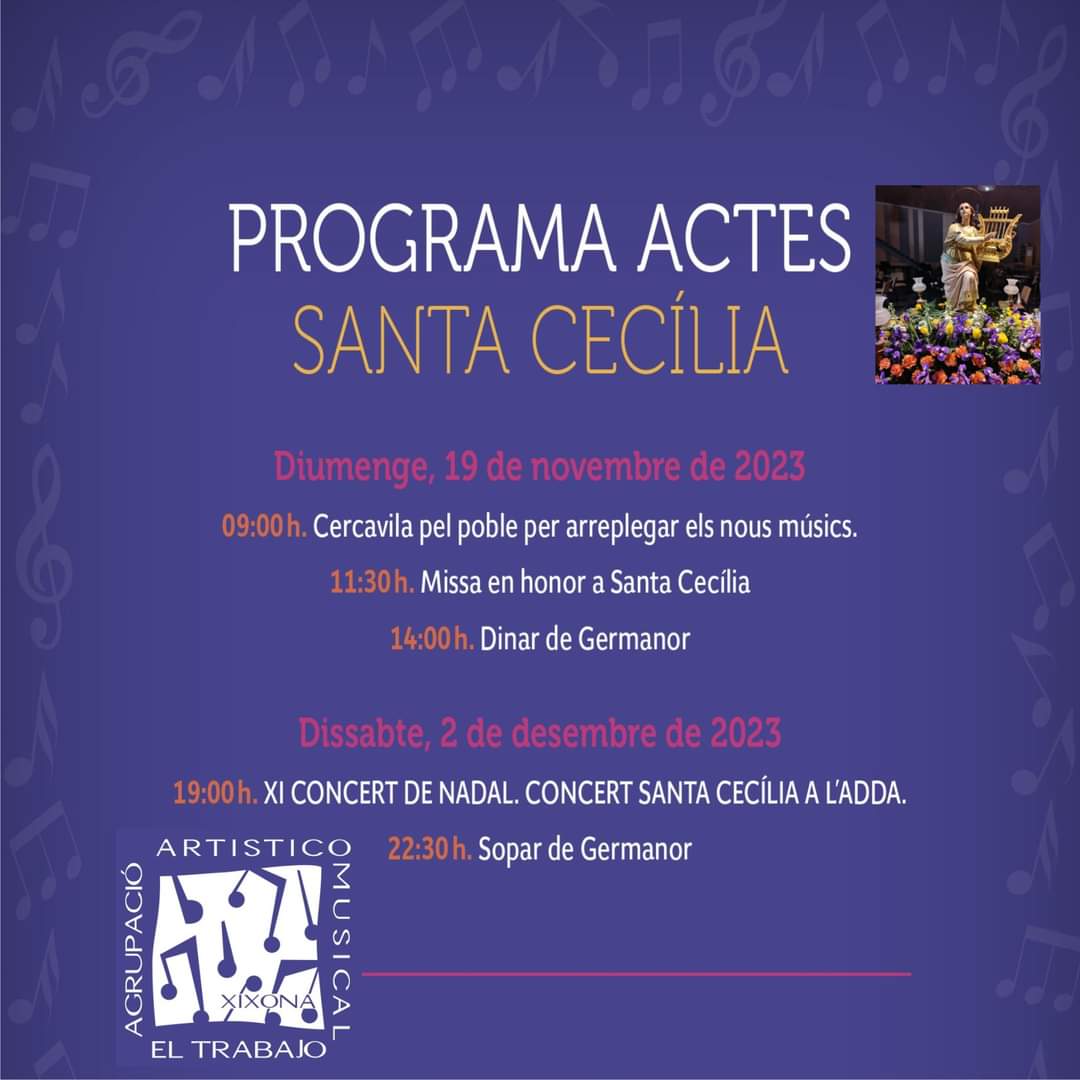 El Concert de Nadal i de Santa Cecília de l’Agrupació Artístico Cultural «El Trabajo» de Xixona se celebrarà el dissabte 2 de desembre, a les 19:00 h, a l’ADDA (Auditori de la Diputació d’Alacant).