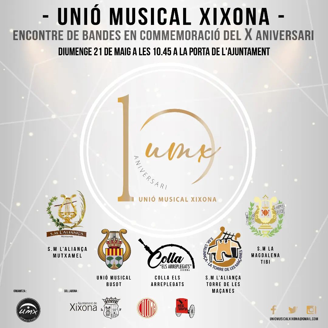 Unos 200 músicos tocarán por las calles de Xixona para celebrar el X Aniversario de la banda Unión Musical Xixona