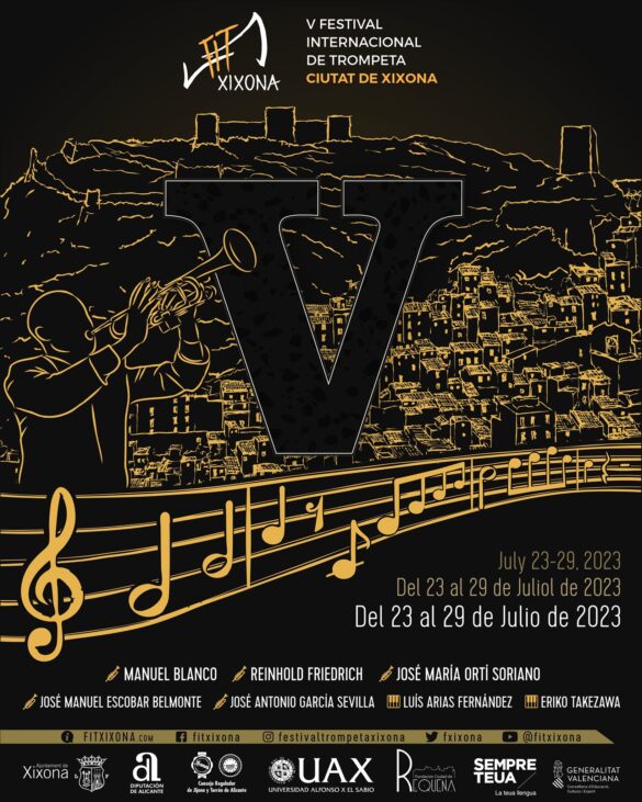 La cinquena edició del Festival comptarà amb un professorat d’alt nivell com ho són: José María Ortí Soriano, ex solista de l’O.N.E. i catedràtic de trompeta dels conservatoris de Madrid i València. Manuel Blanco, solista internacional i solista de l’O.N.E. professor del millors conservatoris d´Espanya (Reina Sofía, Liceu, Alfonso X El Sabio). Reinhold Friedrich, solista internacional, trompeta solista en Lucerne Festival Orchestra, professor en Hochschule füe Musik Karlsruhe (Alemanya), en Barenboim-Said Akademie (Alemanya), en Royal Academy of Music (Anglaterra) i de la càtedra de Trompeta IF International Fundation de l’Escola Superior de Música Reina Sofia. José Antonio García Sevilla, catedràtic de trompeta del Real Conservatori de Madrid. José Manuel Escobar Belmonte, professor de trompeta del conservatori d’Almoradí i trompeta de ADDA Simfònica. A ells se’ls uneixen dos pianistes repertoristes, com ho són: Luís Arias Fernández, professor de piano a l’Escola Superior de Música Reina Sofia i Eriko Takezawa, solista internacional, pianista acompanyant en la Universitat de Karlsruhe (Alemanya) i en Barenboim-Said Akademie (Alemanya) i de la càtedra de Trompeta IF International Fundation de l’Escola Superior de Música Reina Sofia.