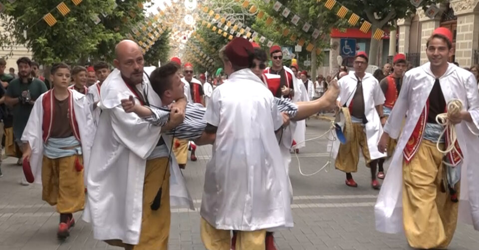 Després de l’afusellament simbòlic, els festers van iniciar una solemne desfilada fins a l’Ajuntament al ritme de marxes mores, en un ambient de gran expectació.