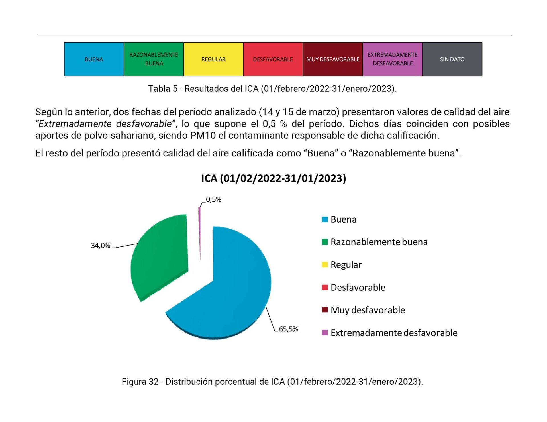 El 65,5% dels dies va tindre la qualificació de “bona”, que és la nota màxima, i el 34% de “raonablement bona”, per la presència de pols sahariana en suspensió.